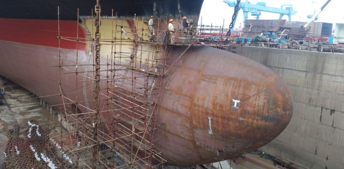 三船的同時段球鼻艏改造進一步提升了公司的綜合修船能力。